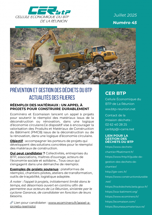 La newsletter N°45 sur la prévention et la gestion des déchets du BTP est disponible.
