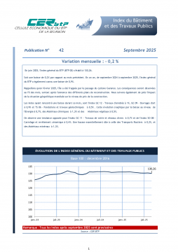 Les indices locaux du BTP pour le mois de septembre 2025 sont disponibles au format EXCEL.
